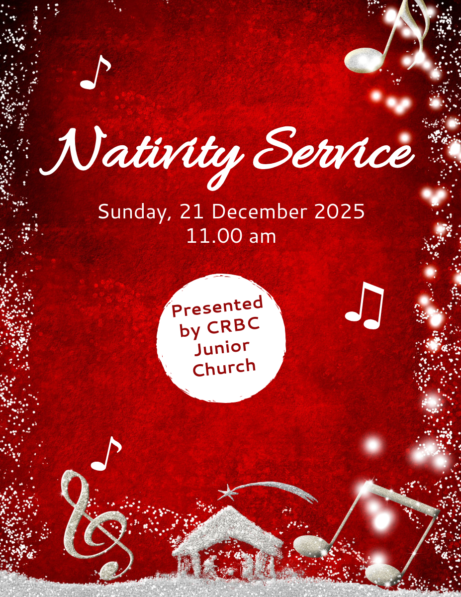 Our Nativity Service, starting at the usual service time of 11.00 am. The service will include a few carols which we know and love, prayers and bible readings as well as CRBC's Junior Church presenting the story of Jesus' birth.
